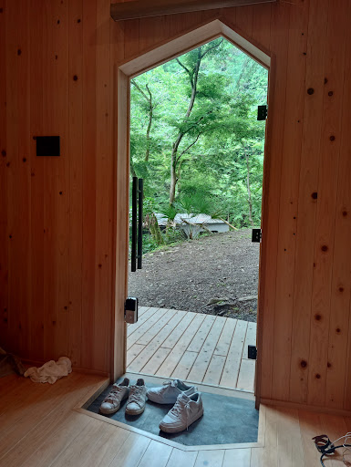 Read moreEs war wunderschön. Tolle Umgebung, man braucht nicht lange um vom Bahnhof hin zu fahren, mit dem Auto ca 6 min. Der Parkplatz ist groß genug. Es gibt Wlan und Grillplätze. Man bringt sein eigenes Grillzeugs mit und den Rest bekommt man gestellt. Besonders gut gefallen hat mir der private Sauna Bereich. Es wird Aufguss gereicht den man benutzen kann. In die Sauna passen bis zu 4 Personen. Es gibt ein Becken zum abkühlen und eine Dusche. Nebenan in den Bach kann man auch zum abkühlen. Nach der Sauna gibt es ein Eis, das gehört zum Service ☺️ Die Nacht war schön ruhig. Die Toiletten sind sehr sauber und typisch japanische washlets. Zum Glück keine Squat Toilets. ich möchte definitiv nochmal hin. Es gibt nämlich zu Fuß 20 min entfernt ein kleines Museum, das wir besichtigt haben und ein Blumengarten. Leider waren wir nicht zur richtigen Zeit da, somit war es lediglich schön grün. Ich würde es aber gerne Mal in voller Blüte sehen. Auf jeden Fall einen Besuch wert 👍🏻 in den Bildern sieht man, dass wir in dem Fass geschlafen haben. Es ist eine High Tech Türe mit Zahlencode. Es gibt Strom im Inneren und eine Klimaanlage, sowie einen kleinen Kühlschrank. Wir waren sehr zufrieden. Eine wirklich schöne Gegend, die Häuser sind sehr liebevoll gemacht und das Personal ist sehr freundlich und hilfsbereit. Ich bin sehr begeistert und empfehle es gerne und guten...