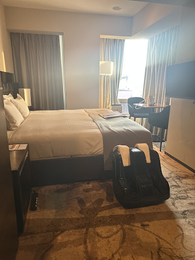 Read moreOverall, I think this was a decent stay. I stayed here for 8 nights and I will list all the pros and cons below:||||Pros:||+ Staff was excellent, with most speaking decent English and very friendly and responsive to requests||+ Location is pretty convenient with proximity to Akasaka Excel Tokyu Hotel (good if you are using the Airport Limousine Bus which will drop you off there) so it was a short 3 min walk to the hotel across the street. There are also 3 subway lines nearby: Akasaka-Mitsuke, Akasaka, and Nagatacho||+ Hotel gives free water, soup, and continental breakfast||+ They provide a free cel phone to use while you're there (I didn't know about this until after I checked into my room, which would have been great as I already bought a SIM card)||||Cons (negatives):||- Room was very small. I know, this is Japan, so you were probably already expecting it, but I still didn't expect it to be this small based on the pictures I saw online. You cannot lay a large suitcase down and open it up without leaning part of it against the wall.||- The hot water in the shower was not working properly everyday. There were spurts in the shower when it would go cold really quick and then scalding hot the next second. I had to learn this pattern so I could jump out of the way when it was super hot to avoid burns. It did this every time I took a shower, but I learned to live with it.||- The carpets seemed to be dirty (the pattern on the carpet is such that you can't tell if it's really dirty, but I could tell it was dirty).||- The lighting is not too bright in the room or bathroom||- Since the bathroom is so small, there really isn't anywhere to place your personal toiletries other than on top of the toilet seat.||- There is no electrical outlet in the bathroom, so I had to use the hairdryer in the bedroom area while sitting on my bed.||- For some reason, my keycard kept getting de-magnetized. I had to get a new keycard 4 different times during my stay. This was highly inconvenient. The guy at the front desk suggested maybe it's because I had it near other cards in my wallet or man-bag, but I made sure to keep it separate on a few other occasions and it still happened. There's something wrong with their machines, I guess.||||Overall, it was a decent stay and I would definitely consider it again though due to the location. There are a lot of great drinking/eating...
