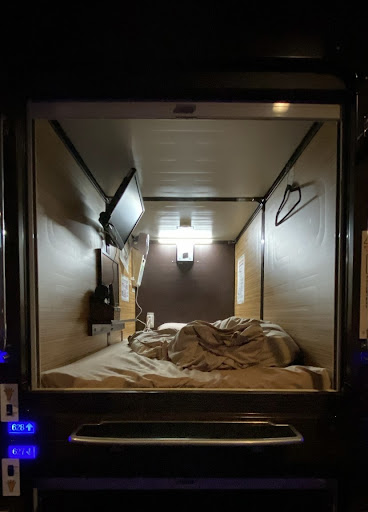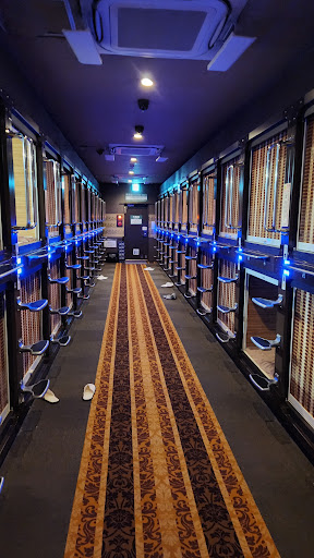 Read moreFantastic and centrally located to everything within a couple of minutes walk.ive included a pretty detail with photos as it seemed it needed an update so ill do my best to explain for tourists from Australia ect: considering.|Stayed here for 3 nights and everything was pleseant and perfect.|Fantastic customer service at the front desk making an easy check in and check out.|And credit goes to the other staff for the whole time i noticed there work effort was exceptionally good in keeping everything very clean and neat from floor 2 to Floor 6 to ensure that everything was upto standard for the big amount of people who are lodging here at the time.||Well sized capsule compared to others i have stayed in the past with a pulldown magnetic curtain to close down for privacy with a rather comfortable matress and blanket.the pillow was somewhat a memory foam pillow wasent to hard and wasent to soft in my opinion,capsule inside also offers Tv,Fan,Aircon,Headphones and Earplugs for Possible snoring people but the whole time there it was suprisingly very very quiet which managed to get the sleeps possible as everyone is very quiet and keep to themselves respecting others in there capsules.||Ground floor/reception is where all the lockers will be the lockers are quite small and dont be suprised if your luggage dont fit its mainly good for backpacks but above the lockerd there wire steel and padlock for carryone suitcases otherwise reception were fine with holding your bigger luggage out the back.|Also shoe lockers which your 1 of 2 keys will fit for locking your compartment for keeping your footwear whilst you can wear the slippers they provide next to it around the hotel aswell as the free pyjamas to also wear around.||Floor 2 offers the laundry and also the shower block and hotsprings aswell as couple of vending machines for cold drinks|Laundry is onky 300 yen for wash with everything supplied and the dryer is 100 yen/20minutes i think it was and 40 minutes was enough for a few days worth if clothes to dry.|Showers are kept very clean and always seemed to see some one maintaning it to ensure it for others.lockers near the shower entrance for your belongings whilst you strip naked and shower and if your one of those shy guys about being naked then its probaly not going to be for you as your gonna happen to see male eggplants around the area.|Showers are great for the experience and the hot water is fantastic with all the different brands of shampoos,cloths,conditioner and body wash supplied.|The onsen was an experience managed to have a few goes in there doing 10 minute stages and personally its not for me other then the relaxation and experience its more a 40 degrees hot jaccuzi to sweat out in my opinion.| |3rd floor is your common area with free drinks and rice provided with a small library and massage chairs to relax in otherwise on the otherside near elevators you have a few seats with window views to see out front and building views.||4th-7th floor is accesible only from elevator from the 3rd floor and are your capsules rooms and bathrooms for your floor which as you can see in the photos are self explantory of what the area looks like mine being the 6th floor of the capsules.||Basically this place has everything you could possibly need and more to ensure a comfortable stay with fantastic hospitality.||Around the hotel|Vending machines metres away as you would expect out front|Train & Jr station a couple minutes walk easily|Resturants all around the place and a mcdonalds couple doors down for those looking for quick feeds otherwise Lawsons to your right about...