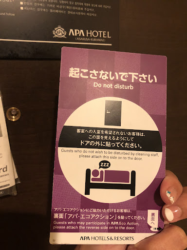 Read moreThe APA Hotel chain has a good reputation overall, but the Asakusa – Kuramae could do more to improve. It is one of 4 APA hotels in the Asakusa area and was very busy. The entrance is set back from the main road so you have to pay attention when looking for it. The location is about mid-way between Kuramae and Asakusa stations.||||The entrance and reception are attractive enough, but down a number of steps: awkward for carrying luggage. There may be another way in but it really needs a ramp to the main road. There are only 2 lifts and one could often wait around 5 minutes for an empty lift to arrive.||||Our bedroom floor and the room itself (small as usual in these hotels) looked rather tired. All the usual APA facilities were there: bath, shower, electronic toilet etc. but the water tap was strange in that it either turned on and immediately off again so that it was not possible to wash under running water or turned on and stayed on under high pressure. The room was very warm too and the staff informed that no cooling air conditioning was available so we should open the window.||||We had a particular problem with our luggage which we'd sent on ahead. The hotel would not accept it as it had not been prepaid (we didn’t get a payment option on dispatch) so we were sent to the local post office to collect it at 11pm: not what we wanted after a full day’s travelling. The reception staff were helpful enough in explaining what needed to be done but a change in policy to add the baggage fee to the room account would have been much more...