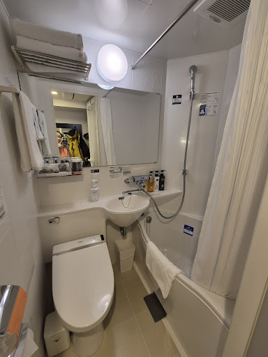 Read moreStayed here twice for a total of 4 nights. We were given a high floor and quiet room as requested. The bed was firm and comfortable. Pillows were thin but firm, hence confortable when stacked up. Water pressure in the shower was good. There were also many charging points around the room. Yukata was provided for use in the room. The location was great as it was easy to get to the trains and a straight line to the airport. There were restaurants, family mart and medical clinics near walking distance. May take longer to go to the tourist attractions. The room was small, but it had all the essentials. Thus, it was good if you just needed a place to go back and rest. It was priced reasonably per night, but do not expect anything luxurious with the price. I appreciated the fast check-in and check out with and fuss free luggage storage with the QR code. Toiletries were provided. The staff at the lobby were also very helpful when I fell ill and provided me with a thermometer and helped call the nearby medical clinic since my husband and I do not speak Japanese. The only thing I was disappointed with was I was unable to watch netflix on the TV using the screen mirroring despite the facilities on the booking site saying streaming services like netflix were available. The room was also only big enough for one luggage to be opened at one time. Hence, it made packing a little inconvenient. The heater worked well during the winter season. There is also no washing machine on site. Overall, it was value for money and a much better deal than other hotels at...
