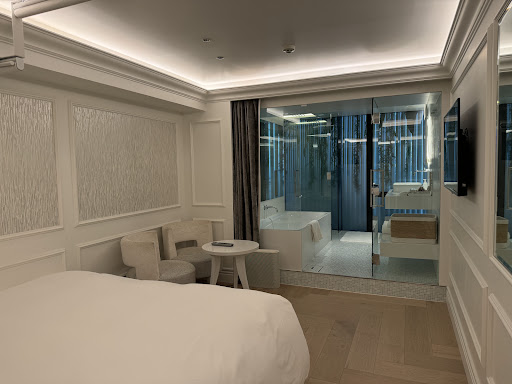 Polished quarters in a cosmopolitan hotel offering an upscale French/Japanese fusion restaurant.