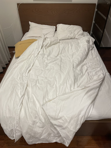 Firstly, an ongoing construction project in the neighboring building, starting at 8 AM, disrupted sleep for light sleepers. No mention of this was found on any booking platforms. Secondly, the apartment screamed cheap quality: thin towels, basic conditioner/shampoo, iron, and hairdryer, and no trash bags provided. For $300 USD a night, this felt unacceptable, even if it’s standard for Japan—elsewhere, this price gets you far better amenities. Thirdly, the 1.4-meter-wide bed was uncomfortably narrow for two people of average build. Additionally, the room was poorly cleaned, with dirty curtains, cabinets, and floors. Housekeeping and towel changes weren’t included in the rate. While there was a washing machine, the absence of a dryer left us puzzled about where to dry laundry.