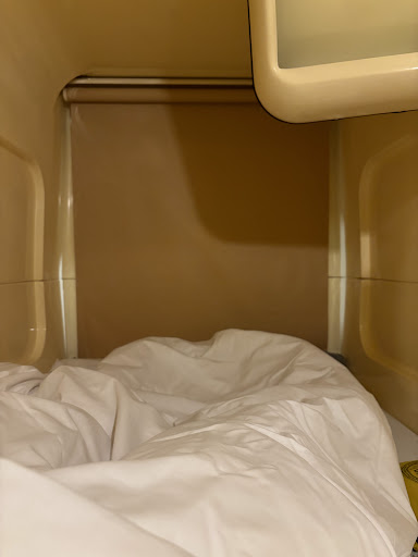 Speaking of beds, I have never had a more uncomfortable night of sleep. The fan in the capsule did not work, so it was perpetually boiling hot. Additionally, the pods seem much smaller than Naritaâs location. I could not fully lay out without my feet cramming into the wall. Calling what you get a âpillowâ is a disservice - you essentially get a bag full of plastic balls. It is beyond uncomfortable.