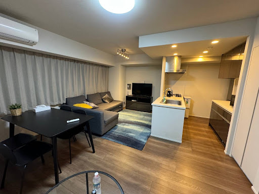 Great location- only a short walking distance from 4 subway lines. Central location where you can easily get to Shibuya, Asakusa, Akihabara, Tokyo Big Sight, Central Ginza, the train station, and Haneda Airport. Good place to stay if you are with family and want more space than a hotel room. We have stayed here before with our family of 4, so I booked HIZ again when I was traveling to Tokyo with my daughter. We always book the 2 bedroom apartment. The couch is also a comfortable sofa bed (IKEA). There was a free limo service from the airport if you reached a minimum booking fee. This was a nice convenience when arriving from USA with jetlag. Downside: The 2 times we have stayed here, there has been road noise. The 2 bedroom apartment is in the back of the hotel. This means it gets a lot of road noise from the nearby highway. The master bedroom is especially loud because there is a sliding glass door that lets through a lot of noise. If you are sensitive to noise, please consider this. The noise did not bother the rest of my family. Perhaps the 1 bedroom or hotel room is in the front of the hotel and would get less noise. Also, on this particular visit, there was a lot of road construction during the day. This only impacted us on the days we came back to rest...