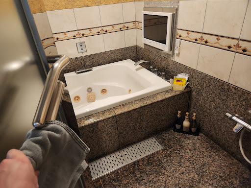 Highly recommend staying here for couples looking to have a great experience in Tokyo! Do not be put off by the love hotel genre! This particular hotel is centrally located to both Shinjuku and Shinjuku-sanchome stations. It’s walking distance to Golden Gai, central Shinjuku, Piss Alley, etc. Location is perfect! In addition, the rooms are 3x the size of most Japanese hotel rooms. Plenty of room for two adults and suitcases with no issue. The room was extremely clean, the bathroom has a separate areas for everything: toilet room, vanity and sink, and a giant shower w/sauna and jacuzzi tub. The bed is comfortable, and there’s also a sitting area. We definitely took advantage of the sauna and tub after spending all day on our feet around Tokyo. Additionally, it’s very quiet. We never saw any other guests. Front desk staff speaks English and are very discreet, I imagine that’s part of the love hotel style. Our room was cleaned every day. Brand new towels still wrapped in plastic were replaced every day. For the location, size, and price alone I highly recommend...