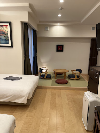 Read moreThe hotel is a 2-minute walk from a FamilyMart convenience store and a 10-minute walk from the train station. It is also just two stops away from Asakusa. The room is particularly spacious, in a good location, and offers good value for money. However, cleanliness could be improved as there were a few hairs near the pillows and on the floor, which was not ideal. Additionally, there was an unpleasant odor in the room each time we returned, which was alleviated by turning on the air conditioning.We stayed for three days without requesting room cleaning, but daily toiletries and towels should be provided to guests by placing them near the doorknob or on the floor. The room is very suitable for families, with three beds and a tatami area. The bathroom, shower, and washbasin are all separate, which is particularly good. The amenities provided are from Pola, which is quite nice.As someone who works in the hotel industry, I pay attention to these details and wanted to provide feedback. Overall, the experience was good, and I would choose to stay here again next...