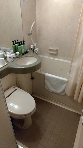 If you've never been in Japan, this is a type of hotel you have to try at least once for the experience on how the local business man and woman spend their business trips at these hotels, but be mindful of carrying only small luggage or trust me, you might not fit in the room together.||This is a typical business hotel so you only use it to sleep with minimum carry on luggage and only for a brief stay while spending all day outside. |Definitely NOT FOR FAMILIES! ||I can honestly say that my bed at home is larger than their rooms and my bathtub is larger than their full bathroom here. So if you are claustrophobic, you might want to go somewhere else.||For those on a budget this place is very cheap, under $75/night including taxes. ||The place is clean and quite but slightly old. Rooms have air condition and heating system so any season is safe. Small tv and refrigerator is also available in each room. The toilets here are those with bidet system too so each time you come out fresh :) and sure there is a small bathtub with shower, shampoo, soap and even toothpaste and toothbrush. ||There is no breakfast included here but there is a restaurant next to the hotel and is very cheap too so there is food available.||It's located walking distance to many stores, restaurants and JR station so you can go to Tokyo, Shibuya, Harakuju, Roppongi etc very cheap and quickly too.||So if budget is an issue and you'd like to party at night then consider staying at this...