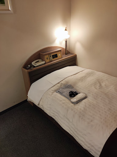 The bed was very comfortable and the room was clean. The bathroom had a small bathtub, shower and japanese washlet. We got free schampoo, conditioner, soap, toothbrushes, combs and razors. You could charge your phone from an USB-outlet on the bed frame, very convenient. The room is small, but we had lots of room since we travel light.