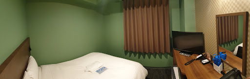When we checked in, despite having booked a Double Room, (paid almost double the average price for a hotel in the area) they gave us a SMALL Double Room, so small that two of us couldn't fit in at the same time. We know that in Tokyo rooms are small, ok. But this room was so small that the hotel elevator was larger. Even though we showed the receipt indicating a different room type, with a different photo and size, they refused to change us, demanding an absolutely unnecessary paid supplement, showing total disregard for the customer. Only after threatening to call the police and numerous calls to the very popular online site where we had booked, did we manage to get the room we were entitled to, but after losing almost a day and a half of our vacation and mental sanity. The result? The new room, equally ugly and small, at least had enough living space for two adult human beings. All this with absolutely unspecialized staff, who DO NOT know English and express themselves only through Google Translate. I'm also attaching a photo of the beautiful view from the room (the most expensive one) so you can enjoy too.