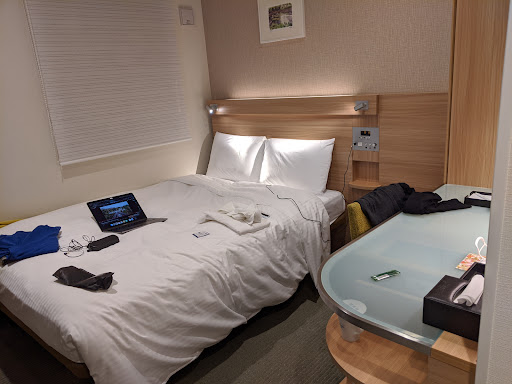 Read moreStayed here six nights and it was the worst bed I ever sleep on in any hotel .It was like sleeping on the floor very hard thin mattress and small uncomfortable pillows.|For two people this bed is very tight and pushed up against the wall makes it hard to get in and out of .|After 6 nights on that bed my back is wrecked.|This is not a Japanese thing the previous hotel I stayed in Tokyo had the most comfortable bed and pillow I ever slept on .Japanese are big on comfort that is why I was so surprised by this rock hard bed .|I ask front desk if they had any better beds and they didn’t really all they need to do is get a memory foam topper or some other plush topper to put over the cheap mattress as the mattress they have is like a box spring without a mattress on top .|They only clean the room every three days as I was there 6 days I ended up doing a lot of my own cleaning.|I got to the hotel 2 hours early before check in and in every hotel I have arrived early they would automatically check to see if by chance the room is ready and let you check in early. But not here they just automatically say check in at 3pm without even looking to see if it is ready .|Why a hotel would not let someone check in early makes no sense it doesn’t cost them anything but they get some good will for free from the customer.|Check is another strange thing as they have these terminals in front of the desk you are to use .They have enough front desk and they gladly help you use these things but it seems a pointless waste to have these in the lobby .|You have enough staff let them check in the quests directly why are they complicating things ? |Not sure the reason why all the customer facing front desk staff are wearing surgical masks but it is not a good look for the hospitality business.|If they fix the problems I mentioned this would be a decent hotel the location is good close to metro and it is a new stylish hotel .|But I would never stay here again I need a good comfortable...