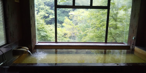 A 5-minute walk going left after exiting the station and turning right before the bridge. It's right next to Daily Yamazaki convenience store which opens til 10 pm.||||Our 8-tatami room with an additional seating area and sink looks pretty new. Fairly standard for a Japanese hotel, nice and comfy. We could see mountains and houses out the windows. There are shared toilets as well as indoor hot spring bath that opens from 6 am to 11 pm (one for men and one for women).||||There's the smell of cigarettes in the halls but not so much in the room. No wifi but there's a tv in the room with a few Japanese channels. Friendly front desk staff. Apparently, Naruhito (Crown Prince of Japan) stayed...