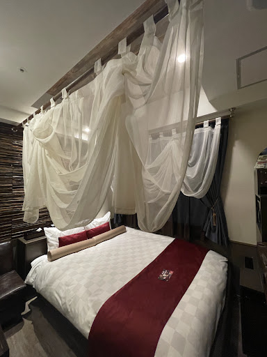 Read moreThis place was amazing! All of the staff were very friendly and helpful, even if some didn't speak English. They have free breakfast every morning (make your own onigiri, juice, coffee, bread, and soup) and s'mores in the evening. There is a beverage vending machine and unlimited serve your own alcohol available 24/7. The inside is so pretty and calming and they have a little campsite themed dining area. Our room was very nice with an area to leave your shoes, a big bath with jets, an adjustable shower head, and a comfy bed with a canopy (plus mini fridge, microwave, tv and kettle). Everything was clean and the hallways were decorated pretty with plants and intricate woodwork. They have lots of freebies including lotion, mints, nose strips, face masks, bath salt, shampoo, conditioner, and hair accessories. You can also rent the larger bottles of shampoo, pillows, a massage gun, casual clothing, and a bed topper. You do have to leave your room key at the front desk when you leave but it was very easy. There was always someone there and I felt this kept us from loosing the key. Overall, we had a great experience and would love to come back one...