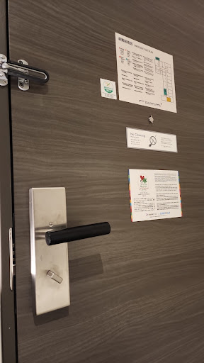 You also have your choice with the room cleaning. You use the magnets to tell them if you don’t want to have it cleaned, or if you just want them to do the bare minimum (like change the towels). You can leave your trash outside the door if you don’t want cleaning and just want them to take that away.