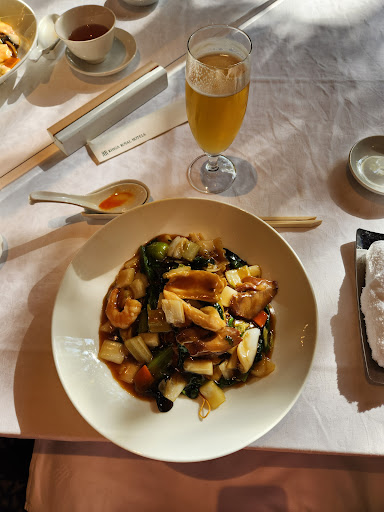 Read moreCame to this hotel for two reasons. Have lunch and take a swim in their pool. This hotel is inside the perimeter of the Waseda University in Tokyo, and it has a very solid reputation. There is an elegance to it, every corner exudes quality. Of the several, excellent dining options here, had lunch at the Chinese restaurant Royal Ryuho. Menu offers a few specialties that include dumplings and dessert. Went for deep fried noodles with mixed vegetables as the main dish. First, the dumplings were excellent, they will melt in your mouth. The noodles were perfectly prepared, the variety of mushrooms and vegetables in a very flavourful sauce. Dessert was a tapioca, milky, mildly sweet delicacy. Service impeccable, and prices very acceptable considering the quality of the dishes, and the location itself. The restaurant actually overlooks the very famous Okuma garden, which even in the Fall, is gorgeous.