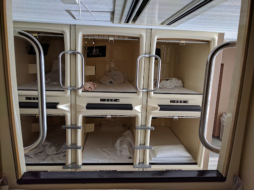 Read moreIf you've never thought of this, try a capsule hotel while in Tokyo! I was trying to find a safe, clean place to sleep in Tokyo without breaking my budget, and found this $41 capsule hotel perfect. I'll let you do a little research on what they are, but this one was really nice. Clean, quiet, polite guests. Very nice spa for showering, hot tub soaking. A room inside the hotel for eating a meal or just chilling out in robes. I made the mistake of wearing my shoes inside - big mistake! Oops. Just put your shoes in the lockers behind you as you face the front desk. You can't lock your capsule, but they will check big bags behind the desk. I actually stored mine IN my cubicle with me. The beds are tatami style, which means futon on hard surface. Not cushy mattress, but typically Japanese. They have lights and TVs in the capsules. Not much noise, but I could hear snoring off in the distance. So might be smart to bring ear plugs. This one is Male Only, which I understand is pretty typical. Kinda of tricky to find without GPS, so make sure you have a good plan for getting there from the Ueno station. It's about a minute walk to the Ueno station, with lots of safe nightlife around the place. Highly recommend it...
