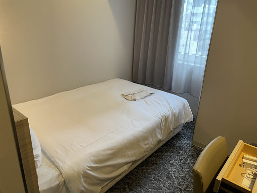 Rooms were actually a bit more spacious than other hotels weâve stayed at in Tokyo. We were given an outside room, so it was nice and chilled. Luckily, the hotel lets you personally control the AC or heat. It was also nice and quiet since itâs further away from the elevator.