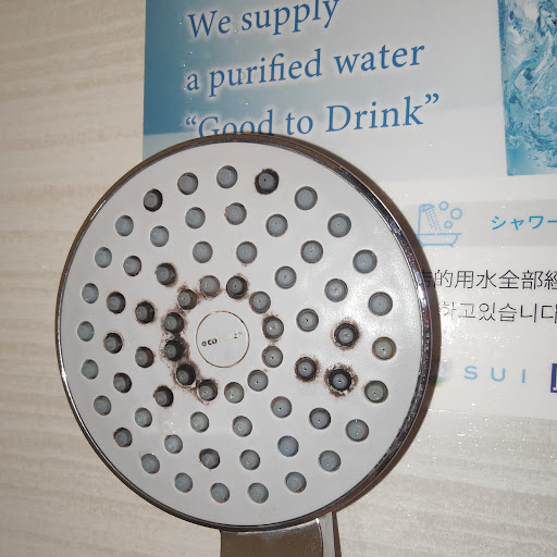 Room: We picked a corner room because it was slightly bigger. Probably not the best idea because we are facing the main street, which is nice for the view but not nice for the traffic noise (mostly just police/ambulance sirens) at night. The room is also pretty cold/badly insulated, although AC fixes that for the most part. Otherwise the room is big enough and clean. The bed is good size. The bathroom is compact but nice and cozy, with typical Japanese toilet and bathtub. Basic bathroom necessities are provided either directly in the bathroom or at the reception, with the exception of...