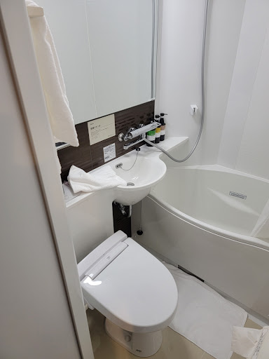 Read moreWe felt that this hotel was centrally located in Ginza and we had quick access to a lot of the shopping and attractions nearby either by walking or using the metro. The hotel is surrounded by good restaurants and convenience stores.The check in was smooth but our room was not available until 4 pm. They do offer luggage storage in the lobby and will deliver luggage to the rooms. The lobby offers a light breakfast (for a fee), a welcome coffee in the morning and they have a spring water fountain that dispenses cold water. There is also a spot in the lobby where you can grab your toiletries for your room or items for the onsen room like the yukata. There is also a pillow selection area and it might be worth getting here promptly because once they're gone they are gone! The rooms were comfy and quiet. We booked a run of the house and although our bag was originally marked to be delivered to a bigger room we got a much more compact one. We didn't mind as we had gambled when we made the choice and saved a bit because we did. The room had a large TV, a small work station and a very small bathroom. The room was still well equipped and we had a kettle, mini fridge, air purifier/humidifier, fabric freshener, spots to hang our clothes and enough room to put our large luggage without it being in the way. The bed was very comfy and we felt we got a good night's rest. The room also had good WiFi and a number of outlets including a few USB plug ins. The room had a tablet which was kind of gimmicky but could control the lights, AC or heat and the TV. There were some videos on demand including some adult content. I spent more time than I felt I should trying to figure out how to screencast and ultimately was not able to. There is an option to select a language on the tablet but some instructions are only in Japanese. We played with the tablet a bit the first night but it wasn't really needed to enjoy the room. We thought it was funny that we only got one long pillow and each day they offered one bottle of water despite the double occupancy.bit is worth while getting the pillow selection and without it we aren't sure how we would have slept. We felt for a hotel that calls itself "premier" the one pillow and one bottle was off.The onsen for men was on the second floor and women were on the third floor. The men require no code but the women's code changes daily and you have to pick up the code from the front desk each day. They have shampoo, conditioner and body/face wash and the onsen is pretty clean but on the smaller side. Each time I went there were 4 men in the soaking bath and that is pretty much the limit. There isn't water in the onsen area but there is a vending machine and water dispenser in the hallway. The women's onsen was not as busy according to my wife but she did note there were guests that weren't aware they should have quiet conversations or none at all. There are lockers provided in the change room and clips to put on your sandals to mark them. There are no towels or wash cloths here though and you have to bring the towels from your room and the cloths can be picked up in the lobby.The laundry area was normally available and they have two washers and two dryers. It takes about half an hour each to wash and dry and they provide laundry detergent. They could use some English signage in the laundry area as it seems some people weren't sure how to use the machines like how to start or that they needed to empty the dryer lint. Each time I used the laundry machine I removed about a quarter inch of lint from the screen which shows that they aren't being properly maintained.The hotel only offers room service to rooms if you put a room service magnet on the door before 11 am. When the magnet is hung it is cleaned well and they replace the towels and bring you...