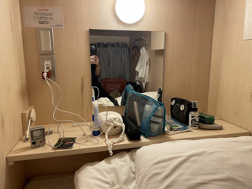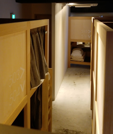 Read moreHad a really great stay in this hostel/capsule hotel. I booked a bunk in a 8-person all-female dorm. Check in was friendly and convenient, the front desk staff speaks fluent English and all documentation/rules are in English. The check in desk is manned from 7AM to 11PM. The bunk was private with a enclosed half wall and drape, was appropriately-sized (about 5.5ft long and plenty of room to roll around) and had a mirror, built-in wall lamp, a long shelf and two hangers. Top bunk uses a sturdy ladder to climb up. No talking in the room and my roommates and I all treated each other like we were all invisible, completely private and unintrusive. I’m a light sleeper, so I used earplugs to block out any noises of rustling paper, coughing, light snoring and it was perfect.