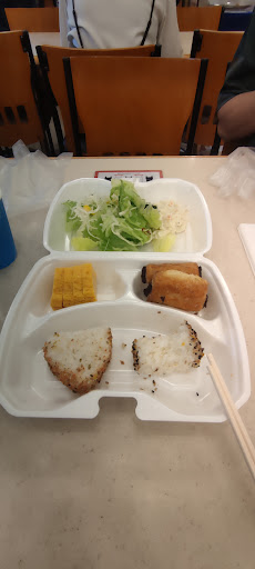 Free onigiri (rice ball) breakfast is okay. There's tuna mayonnaise, salted plum, and a couple more flavors. The lobby can be quite packed in the morning with guests. So you might have to bring it back to the room to eat. There's a sign to inform guests that they should not bring the food out of hotel ground to prevent food poisoning.