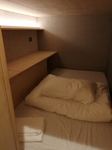 Unito Chiyoda gets the job done, but I wouldn't stay here again. The main reason is the location, but there are some other downsides as well. For positives, the staff are really nice and the place is relatively modern. The place has smart locks for the outside and individual floors. The furnishings are nice and not ugly. There's a shared workspace and a kitchen as well on the 2nd floor. The capsule is very big, so much that you could use your laptop in there and the lighting inside is very comfortable. However, Unito Chiyoda is a 12+ minute walk to any nearest station and there are better locations within the same price range. Also, the bathroom is kinda awkward. The mens showers are on the first floor, while the capsules are on the 4th and 5th floors... The sink of said bathroom is fully exposed to the lobby and that feels kinda embarassing. It was also a bit busy around 1am at night, people waiting to brush...