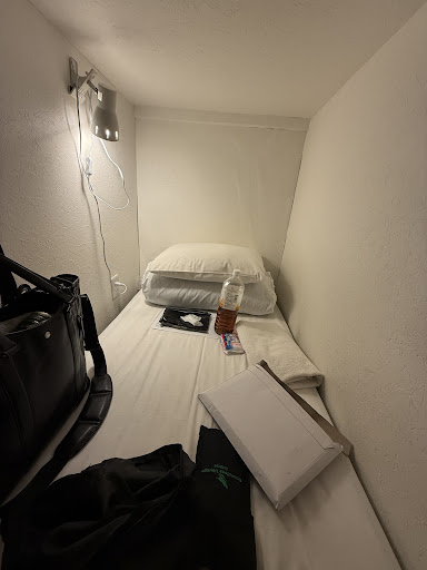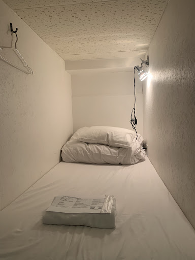 その日に予約した客が、初めて利用する場合は諦めて下さい。深夜の0時過ぎにオートロックのドアを開けられず、金属のドアを叩き続ける、、、中の宿泊客が対応を迫られる。 なぜなら、リモートの運営が一切対案してくれないから。 15分以上ドアを叩き続けられる。その上、1:30過ぎまで荷物の整理、チャックを開けたり閉めたり、、、静寂は2:00近くまで訪れることはない。 半締まりの薄いカーテン一枚で遮音できる訳でもなく、眠れる人はカプセルから足を出したままイビキをかくひとだけ。