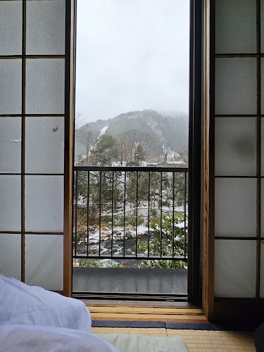 We had the most wonderful stay with the old couple who were extremely welcoming and took great care of us as soon as we walked into the door. They don't speak English but used Google translate to communicate with us with a lot of patience and always with a smile. They're super cute! We paid extra for the breakfast that they cooked for us. It was our first time experiencing a traditional Japanese breakfast and it was super delicious! Our bedroom faced a beautiful gorge, the winter (early March with snow) view was amazing. The location was a bit of a detour for us and there wasn't much to do in that area in the winter but it was well worth it to experience the local Japanese living.