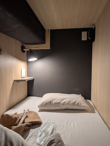 Use only as a last resort. I booked last minute for a weekend and little else in the area was available for less than 5500¥ per night. If you are at all sensitive to cigarette smoke refuse to stay on the 3rd floor. There is a smoking room right next to the 3rd floor tiny common area and it fills the entire floor with cigarette smoke whenever it's used. I believe it's a big mistake for them to keep that space available for shipping since it ruins it for everyone else when a single person decides to chain smoke. They moved me to the 4th floor when I requested and the air was clean and it was well ventilated and didn't get stuffy at night like it's common in other similar places. You will have to keep all your clothes in your suitcase since the only lockers are sized to only fit a handbag or a hat. There is a separate box available for your shoes. There is no changing space. You will have to dress in your bunk or a toilet stall. It is a mixed gender space so dressing in the hallway would be inappropriate. The shades on the bunks are not opaque and let in a lot of sunlight or ceiling lights. The bathrooms and showers are serviceable. Fresh towels are available at any time from a stack. There is no staff present most of the day so if there's a problem with your booking or the facilities you will need to contact through your booking agency. When contacted via Agoda they were relatively responsive and responded...