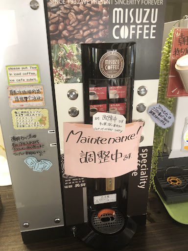「申し訳ございませんがコーヒーマシン故障中につき朝食ご利用のお客様は フロント前のコーヒーマシンを御利用下さい 御迷惑をおかけしますが御了承下さいませ」