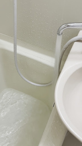 お茶や使い捨て歯ブラシ、ブラシ、紙コップ、使い捨てボディースポンジはフロント横にご自由にと置いてくれています。ただ、カミソリは剃れないらしいです(笑) 部屋には、電気ポット、ドライヤー、シャンプー、トリートメント、ボディーソープが付いてます。 トイレは、ウォシュレット付きです。 フェイスタオルとバスタオル、バスマット、簡易バスローブ、使い捨てスリッパも付いてますし、本当に快適。 持参する荷物が少なくて良きです☆