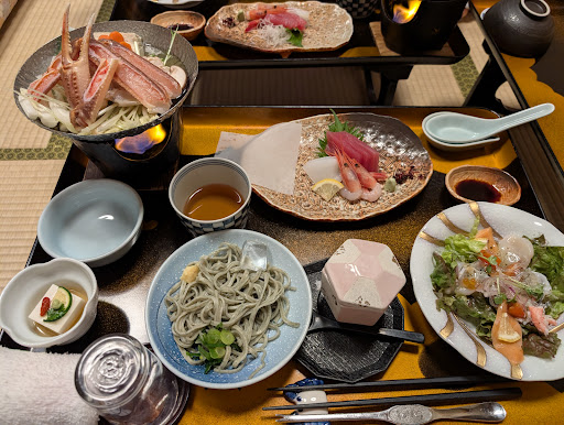 Read moreThis is our first time at a traditional ryokan and we simply fell in love the moment we arrived. Although the owner and staff spoke very limited English, they made us feel special and tried their best to make our stay as enjoyable, comfortable and memorable as possible. They offer free pick up once we informed them of our arrival time at the station. Once we were in the ryokan lobby, we were immediately greeted by the owner who gave us a quick tour of their lounge and o-furo rooms, then escorted us to our room, while their staff delivered our luggages. Then, we were offered a cup of hot green tea and some sweets which were very refreshing.||||We booked through JapanHotel.net and the agent was prompt in answering all my emails. On their website, their rates are listed as per room per night with breakfast and dinner included, but we requested for 1 dinner only. They accommodated our request and deducted fees from the total room charges. So if you want to book this ryokan, JapanHotel.net is very reliable.||||Overall, friendly ryokan staff, clean and spacious tatami room, beautiful zen-like decor, and convenient location around the 7 public bathhouses. Everywhere can be reached by foot. My personal favorites are their lavish banquet-style red snow crab dinner, free bathhouse pass, free beautiful yukata wear, free massage chairs, big HD TV, powerful air conditioner, and big beautiful hot bath rooms. Everything about this place is superb! We were so pampered, we regret not staying longer. Even greater, the owner drove us to the station on the day we left because she felt bad that we had to drag our heavy luggages all the way to the station. Very considerate. We will definitely re-visit this place again...