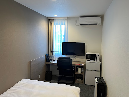 今回、国道側の客室になりましたが、爆音車両(特にバイク)が走行すると、室内に響く煩さです。また、国道側の外の景色はちょっと楽しめない感じで、結構なスピードで車両が左右にビュンビュン通過していくので、カーテンを開けているとかなり落ち着かない感じです。