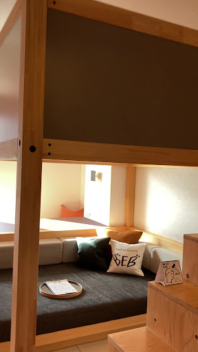 With clean, fancy and spacious rooms, cycling-themed large lobby with lots of tables and seats for group activities (e.g. playing cards) and some attractions to keep the children entertained (e.g. strawberry balls pool, strawberry tricycle photo spots), this hotel offers bicycle rental service and also organizes a water bicycle activity on the nearby river during the cherry blossom season. You have to book in advance as it's quite popular and quickly sells out.