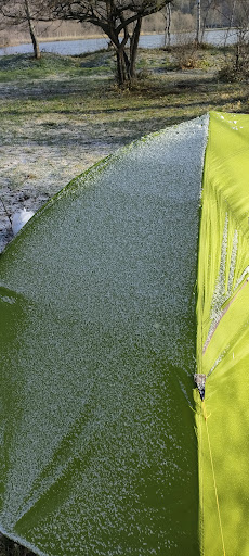 湖畔は朝霧で結露しまくります。絶対に開口部を湖に向けないでください。