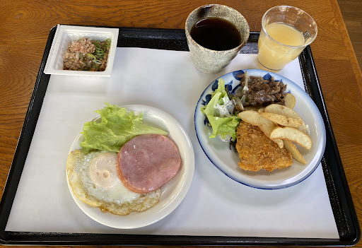 Read moreWe loved our stay here! The owner was very friendly and spoke good English. We stayed in a room with two twin beds that was very cozy. The room had its own temperature control which was great because the weather was cold. In the morning the owner made us a delicious Japanese breakfast including a fresh persimmon from a tree in front of the hotel (the pictures don’t include the entire meal). The shower and toilet are shared with other guests but they were clean and we did not mind. The best part of this hotel was the western style rooms are dog friendly so we were able to bring our dog!