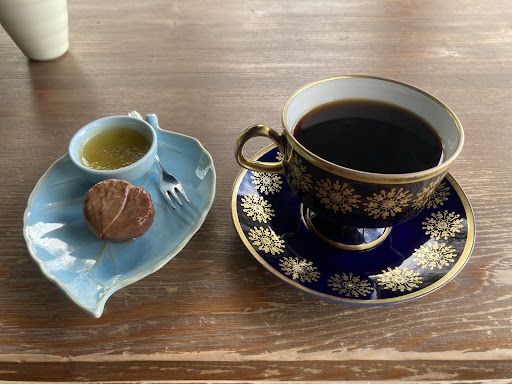 Read more峰寺に行こうとすると駐車場の案内に従ってたどり着くのかこちら。道は細く何度か曲がる登り坂。途中退避できる所もあるがわずかなので、運悪く車で対向車が来たら結構バックする必要あり。私はバイクなので平気でしたが。 そんな苦労をして辿り着くと、気さくなオーナーと良い眺めと美味しいコーヒーにありつけます。その辺りの歴史を紐解く貴重な資料も見られま...