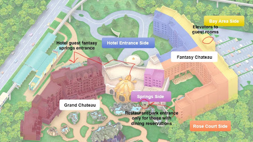 Entrance to Fantasy Springs from the hotel requires you to exit the front of the hotel, make a left, and either go down a large flight of stairs, or use an elevator. Both of which are outside of the hotel. You make a further left and reach the entrance security, and the ticketing gate is beyond that under the hotel. I was honestly expecting to be able to be able to exit the back of the hotel, where Fantasy Springs is, and enter the park that way. It’s a bit counterintuitive and an odd choice.