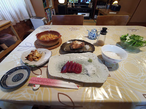 Read more屋久島観光と宮之浦岳登山の拠点として2泊お世話になりました。||和室を利用しましたが、広さも十分です。ご主人の旅行者に対する気遣いが素晴らしかったと感じました。||食事はすべて手作りでとても美味しかったです。特に初日に出てきたカツオの刺身は「鮮度がよく、10分経つと味が変わってしまうので先に食べてください」と言われましたが、言葉の通り全く臭みもないおいしい刺身でした。||ボリュームも十分で満足できるものでした。||また、宮之浦岳登山の際は、朝食を外部業者の弁当出前(別料金)に変更していただきました。2食付で予約していたのですが、弁当に変更した分の朝食代はちゃんと宿泊費からマイナスしてくださってました。||当日は雨に降られてしまい、服から靴までずぶ濡れになってしまいましたが、縁側の乾燥スペースにはハンガーも多数あり、小さいですが除湿機もあります。私の場合は翌朝までにはすべて乾きました。靴乾燥機もお借りでき助かりました。||食事時には屋久島の写真や星空をスライドショーで流したり、旅行者に楽しんでもらおうとする姿勢が強く感じられました。||もともとあった住居を改築していると思われ、若干古さを感じる点もありますがコストパフォーマンス...