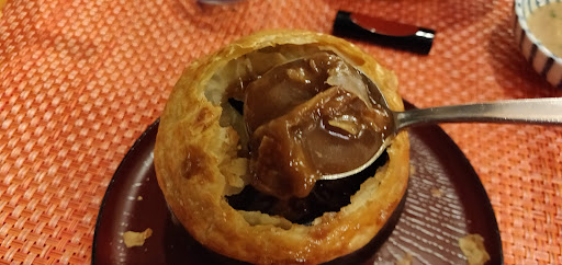 More courses came after the appetiser - there was a puff pastry oxtail soup that was as thick as curry. The highly regarded local rice was served with cherry pickles. They even added apple slices on top of the almond pudding to match the red cup. The feast was satisfying - visually, gastronomically and maybe culturally, as I got to sample so much local produce.