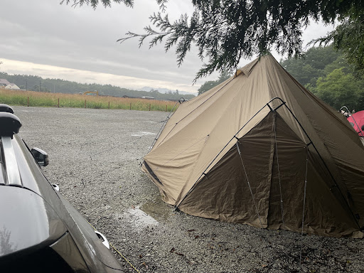 ・今回は利用しませんでしたがシャワールームが22時まで無料で利用可能 ・トレーラーの中にトイレと洗い場(温水有)があり、どちらも土足厳禁✖スリッパがあります。 ・トレーラー横には温水がでないタイプの洗い場もあります。(こちらは焚き火台や鉄板など汚れもの用) ・ボタニカルサイトの前には広大な芝生広場が広がっており、こちらは遊んだりしてOKなフリースペース!お子様がいる方はオススメですね。 ・地面がとにかく固い!鍛造ペグや頑丈なハンマーを持っていくことをオススメします。管理棟でも数に限りあるみたいですが鍛造ペグとハンマーを貸し出していました。 ・今回ボタニカルサイトを利用し、他のサイトは見てないのでわかりませんが地面の石が比較的大きめで痛いです。お座敷スタイルの方は室内では履物必須。履物さえ履いてれば気になりません◎ ・キャンプ場から見える位置、車だと1分くらいの位置にスーパー、百均、薬局があります。買い出しにも一切困りません。