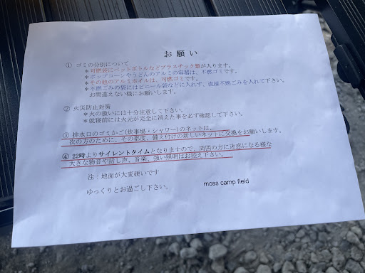 ・区画サイト内は水溜まりだらけでした。それなりの料金なのだからチェックイン前にどうにかしてほしいところ。受付や管理棟が立派でも意味はありません。利用者にとって大事なのはサイトです ・トイレや炊事場、シャワー室がキレイなのは新しいのだから当たり前。でもマナー悪い人だらけだから汚れるまであっという間と思います ・地面は極硬。鍛造ペグでないと刺すことはムリだと思います。ペグの抜き方を知らない人はなかなか抜けないので、最悪の場合放置されている可能性もあるのでよく見ましょう ・利用人数(サイト数)に対するトイレや炊事場の数が少ない ・炊事のシンクが狭すぎる上に蛇口が短いので洗い物にかなり苦労した ・サイトは砂利というより大きな石がゴロゴロ。寝るときは厚めのマットなりコットで ・薪は針葉樹が700円、広葉樹が1000円。量質ともに普通 ・隣の区画とは線で区切られているのみです。割とキャンプ初心者やグルキャンが多いので駐車している車のすぐそばに張り縄してペグ打ちしてきたり焚火をするマナー知らずもいます。気を付けましょう