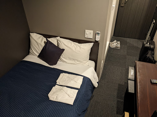シングル、セミダブルのお部屋 お部屋、ユニットバスと153cmで十分。 狭い方が落ち着く方は良いかと。 テレビとセミダブルベッドとレンジとエアコンが凄くミスマッチですごいです。 ですが、エアコンは有難いことに点けたままでも消えません。 レンジも部屋でゆったり食べる派は助かります。