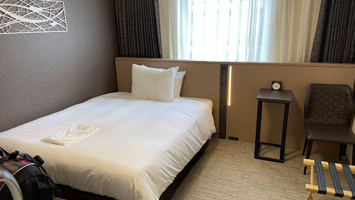 The rooms are neat, with lots of minor nuances that really help to make it modern adn technologically superior to anything you'll find elsewhere outside of East Asia. If you're here for business, they've got a desk with outlets nearby along with a mini desk by the window in case you'd like to do work with a scenic city view. One thing extremely helpful in the room is the availability of a three-pronged outlet by the bedside. Hugely helpful for the be-all end-all solution to the North American traveler. The room comes with traveler charger converters as well and a USB outlet on the headboard of the bed. I think all rooms come with a recently popular service in Japan where you are able to borrow and use a phone for the duration of your stay. Of course you can't personalize it but it's very useful if you plan to tour around and need data access to look up things on the go. You can also call from it.
