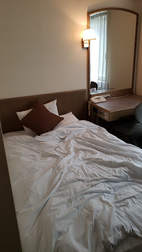 Read moreI was at the property for a business trip at the naval base. You can literally walk to the base in about 5 minutes, so it's great if you are working there. My room rate included drink coupons, and although I'm not a big drinker, it was nice being able to get the occasional beer in the evenings. Coffee was available 24/7, always a plus in any hotel. Breakfast was also included. Nothing fancy, but it filled the hole, and while the breakfast was standard American fare (scrambled eggs, french toast, great orange juice, etc), they also had something Japanese on available. Tempura shrimp one day, pork rolls the next, etc. ||||It's right in the middle of the action. It can get pretty noisy outside. I use my phone as a white noise machine, so no problems. There is a 7-11 caddy-corner to the hotel, and Japanese 7-11s are nothing like those in the states. They had really good food, inexpensive bottled water, etc.||||The wi-fi was simple to access, you just had to reconnect when you went from your room to the lobby. Most of the guests were American, Australian and Brits. There was the occasional Japanese customer, but they were in the minority. There are loads of excellent restaurants within easy walking distance, and the train station was about a 10 minute walk. The desk clerks spoke decent enough English to make check in and out fairly simple. ||||The room I had was small, but adequate. It was clean, and had black-out blinds which were necessary to block the light from the street. ||||If I have another trip to the area, I would happily stay...