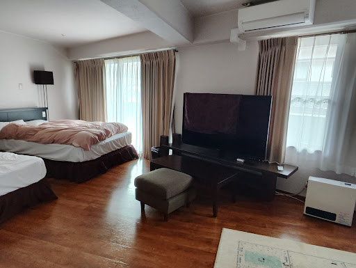 I would give the best review except one single issue. It is an apartment of split levels. At entrance level, there is a bathroom, a dining area, and a kitchen. At the upper level, there is a living area, the bedroom, and a second WC. The place is spacious, clean, well-decorated, and most importantly comfortable (not only because of the free snack, drinks, and wine). The hotspring water pumped into the bathroom is definitely an enjoyable feature. A family with 3 different interests may use the two big TVs and the little one in the bathroom to reduce argument on what channel to watch.