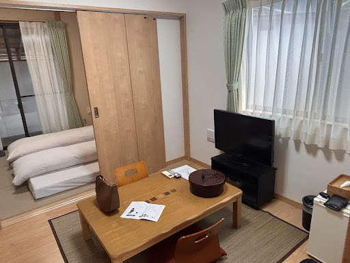 This ryokan is a little hard to find, but it's in a nice location near Yunotsubo Road (Yufuin's main tourist shopping area), a decent and cheap restaurant, a big drugstore, a 7/11, and two grocery stores. Yufuin Train Station and Bus Terminal are also reasonably close (10-minute walk?). Meals at this ryokan are very pricey, so it was nice for us to be able to leave and go to nearby restaurants for much cheaper fare. The grounds are hidden in a residential area behind an Eneos Gas Station. It doesn't seem like it would be a nice place, but it was far enough off the city streets and away from the gas station to be very peaceful. There are small rice paddies nearby, and you can get some natural scenery on walks. Most of the staff are very kind, but one in particular was a bit cranky. She spoke to my Korean wife in low Korean - something one should never do to a customer. We just figured Korean was probably her second language and she didn't know better, so we didn't give it much thought at first. Later, when speaking to my wife in Japanese (my wife is fluent), she was also quite short and rude until my wife spoke up about it. Everyone else was very kind, though, from the elderly man who helped check us in and gave us some free handmade owl pendants to the middle-aged man who checked us out and held our baggage for us while we went about town for a few last hours. The rooms are old, but not necessarily in a traditional, charming way - a 10+-year old TV with no USB ports (not that we wanted to watch TV, but we wanted to charge one of our many electronic devices), a safe that was out of order, sticky door locks, etc. Most of it wasn't that big of a deal to us, but if it is to you, be warned. Also, not much of the signage is in English (This is true for most places in Yufuin, which tends to attract mostly Japanese and Korean tourists). My wife handled most of the interactions with staff, so I don't know about the English ability of anyone there. Bring along someone who knows Japanese or Korean if you don't. Given a little upgrading and lessons in manners for one employee, this would be a place we'd...