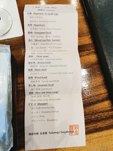 Read moreWe stayed here for two nights and had a fantastic experience. Although it’s a bit far from the bus/train station, they provide a free shuttle bus to take you to and from town. Being up the mountain a little ways, the view of the mountain and valley were beautiful. ||Another thing my wife liked was that they served both lunch and dinner. There were a two or three hour time frame where you could choose when to have your meals. The meals themselves were Japanese style with many different dishes throughout the courses. By the end of the meals, we were all full. ||The rooms were clean and had all types of amenities: TV, wifi, toothbrush, razors, hair dryer, air conditioning/heater, toilet and sink, hot water dispenser, table and floor chairs, balcony with small table, safe box and wardrobe. The only thing missing from the room was a shower. This was fine with us because we spent a lot of time in the hot springs. There were no western style beds in the room. Instead, each night during dinner the housekeeping staff would come make up a floor bed, which was very comfortable for us. ||The hot springs were calm and relaxing. They have two private/family hot spring rooms and separate public ones for men and women. Both types have indoor and outdoor baths with views of the mountains. The private baths are on a first come first serve basis, but the room tv shows you if the private baths are available. If not you can wait in the lounge area outside the private baths until they become available. Each of the areas has showering areas with soap, shampoo, lotion...||The staff was extremely helpful and polite throughout our stay. They were courteous and always asked if we needed anything to make our stay better. Also, they were very accommodating if we wanted to change times for meals or shuttle services.||If you ever get a chance to stay in Yufuin, I would suggest choosing Saigakukan. We will definitely be...