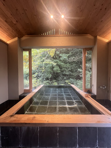 Read moreThis resort is located in the Oku-Yugawara area surrounded by beautiful nature.||You can relax calmly at this resort since there are only 5 rooms and infants and children can’t be brought into the dining room and large communal baths.||When I went to the large communal baths, I could enjoy it as a private bath because no one else was there.||It was a great experience soaking in the outside bath alongside the Fujiki river. ||This resort is good for customers who want to enjoy their own private space. ||We stayed in a 3 bedroom guest room which also provided a private bath.||We could enjoy a luxurious time in our private onsen.||I felt the onsen was effective in moisturizing. ||We had dinner and breakfast in the dining room.||Both dinner and breakfast were generally delicious and beautiful. ||However, for over 30,000 yen for 2 meals, I expect much more.||I was awoken quite early in the morning due to a great deal of traffic on the road in from of this resort, but every employee welcomed us with the spirit of hospitality.||Generally speaking, I recommend this resort.||||奥湯河原はキッチン イトウ スタイルの側にある旅館。||同じ系列の離れ「奥湯河原 秀邑(ほむら)」と2018年1月にグランドオープンした離れ「紫葉(しよう)」とともに異彩を放つ存在。||離れは、他の客と接することなくお忍び旅が満喫できるので、お値段もつくりもセレブ向き。||||私達が泊まったのは、和室12畳と次の間6畳に、洋間ベッドルーム(シングルベッド2台)を設えた和洋室。||和室から見える庭園の紅葉がちょうど真っ赤に染まっていた。||庭園バックに思わず自撮りをしてしまった(笑)。||春は桜、初夏は新緑と紫陽花が楽しめるらしい。||室内の檜風呂には天然温泉。||||食事はダイニングに出向いていただき、||洋間のベッドで寝るので、部屋食や布団の出入れを煩わしいと思う向きには快適な仕組みだと思う。||||藤木川に面した、広々とした大浴場では、源泉かけ流しのお湯を、心ゆくまで堪能できる。||木々の薫りを体感できる露天風呂は、快適そのもの。||部屋数が5室と限られている為、お風呂は常に貸切状態だった。||泉質は、さすが奥湯河原、保湿効果が高い気がした。||||食事はカウンターとテーブルを配した落ち着いた雰囲気のダイニングで。||旅館にありがちな懐石料理でなく、和洋折衷の創作会席。||料理長おすすめのらんぷすてーき約80g 2,500円(税込)を追加で頼んでみた。||料理全般、頑張っている感じはする。||が、お値段を考慮すると、もう少し感動!があっても良いかと。||たとえば、||「望水」の朝食の、今まで食べたことが無いぐらい美味しい鯵の干物や、||「城山観光ホテル」の日本一の朝食ビュッフェや、||「時の宿...