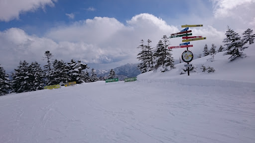 Read more第5ロマンスは特定の時間しか運行されませんので、通常のかぐらスキー場の最高地点です。 ここから、フォールラインに滑るとかぐらメインゲレンデ、コースの右端にそって滑ってパノラマのリフト降り場を越えた後、分岐を右に進むとパノラマ、分岐を左に進むとジャイアントに入れます。 降り場を降りた直後に右手に閉鎖中の幕がないときは、かぐらの山頂リフトとなる第5ロマンスへ行くことができます。 降り場を降りて滑らずに、左手側に20メートルぐらいスケーティングすると田代連絡コースに入ることができます。 ということで、かぐらスキー場の要となる最重要な場所です。亜高山帯にあたりますので、近景の針葉樹林も遠景のパノラ...